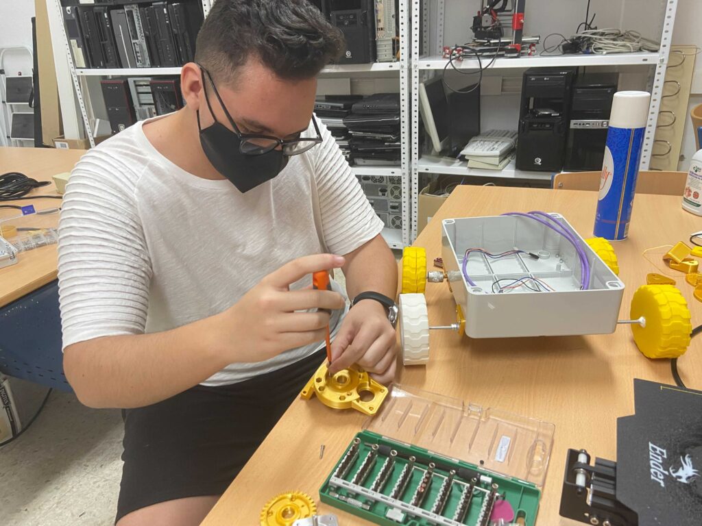 Once all the necessary parts were printed, we began to assemble a rover to test the whole system. Using as many plastic parts as possible, we created our rover and the result is the following one: